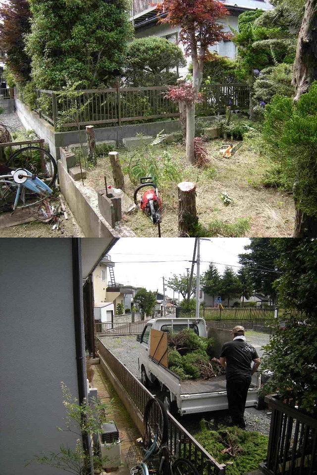 伐採は地上高0cmまで行い、枝葉は積込み、持帰りました。